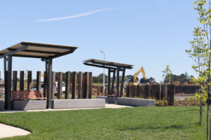 The team have installed reclaimed timber upright posts – synonymous with Integra Developments and a mix of concrete seating and park benches throughout the wetlands, and all three shelters are now complete – adding both functionality and charm to the area.